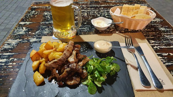 Bistro and Tapas Bar 13 grew out of its owners' desire to fuse the culinary styles of both islands of Fuerteventura and Sardinia so that visitors can enjoy traditional recipes based on fresh and seasonal produce in a homely and informal environment. Its menu includes many vegetarian dishes such as Spanish potato omelette and fried goat cheese as well as Seafood dishes such as fish croquettes, salmon carpaccio, and many other meat and chicken dishes.