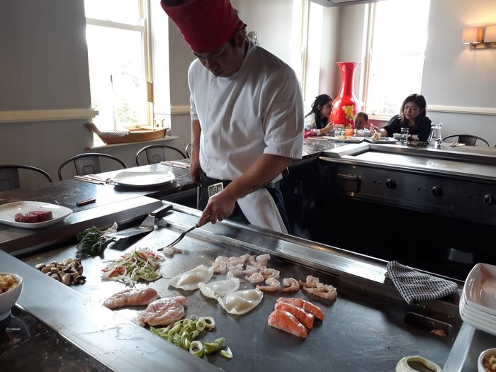 The restaurant offers three types of different dishes as follows: Japanese Teppanyaki dishes, which are recipes dating back to the twentieth century. They are cooked entirely in an iron tray, and when eaten, customers sit on a granite table to simulate this dish when it is served to them. As for the second, it is traditional Chinese dishes that are presented in a modern way, so they build a sense of adventure and try different foods from this menu, whether it is meat, poultry, seafood, or others. As for the latter, it is children's dishes so that the taste and taste are suitable for this age group.