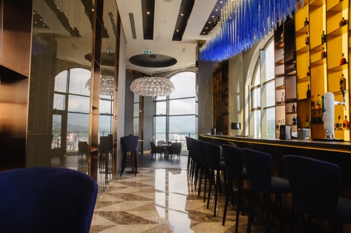 wonderful restaurant located on the last floor of a skyscraper. And in it you will enjoy amazing views of the whole city, and the restaurant provides dishes from a variety of international cuisines, including Japanese and European cuisine, and the place also offers many grill dishes, and some vegetarian dishes. The restaurant is keen to prepare its dishes with extreme precision and from fresh and high-quality ingredients. Among the options offered are the delicious black burger, sushi, steak, shrimp salad, prawn soup, and many more.