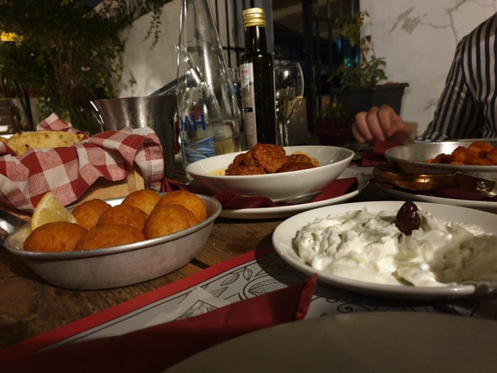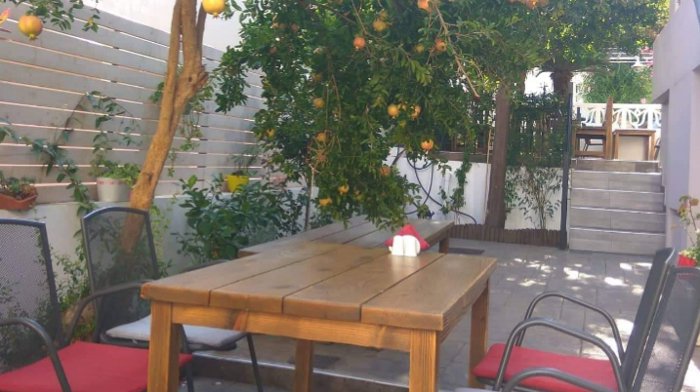 Pomegranates Restaurant, called this name, due to the presence of four pomegranate trees in its outer yard, which shade the wooden benches, in addition to the presence of an inner hall that includes comfortable sessions, and the restaurant menu offers customers many options, including meat soup with potato balls, and soup Meatballs with Pumpkin, Greek Salad, Vine Leaves Rolls, Minced Meatballs with Tomato Sauce, White Beans, Grilled Chicken Breast, and many more.