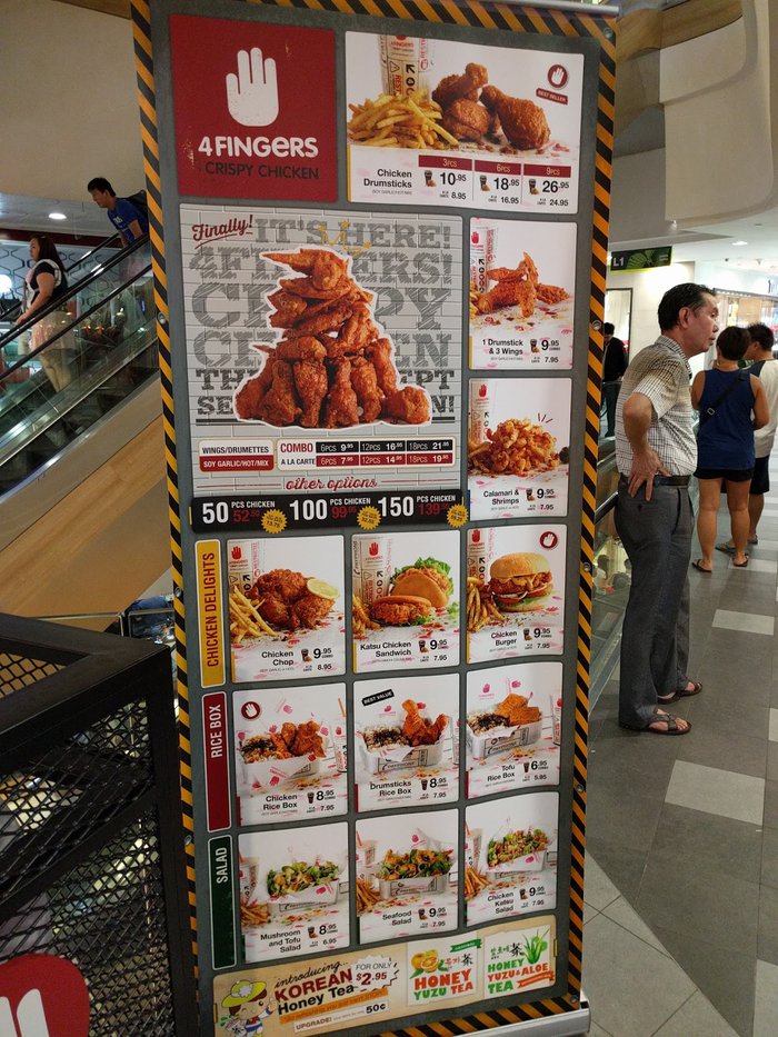 Fingers Crispy Chicken Tampanis Central 1 is one of the branches of the Singaporean fast food chain 4 Fingers, which specializes in preparing fried chicken in the crispy Asian way, and is characterized by its fast service.