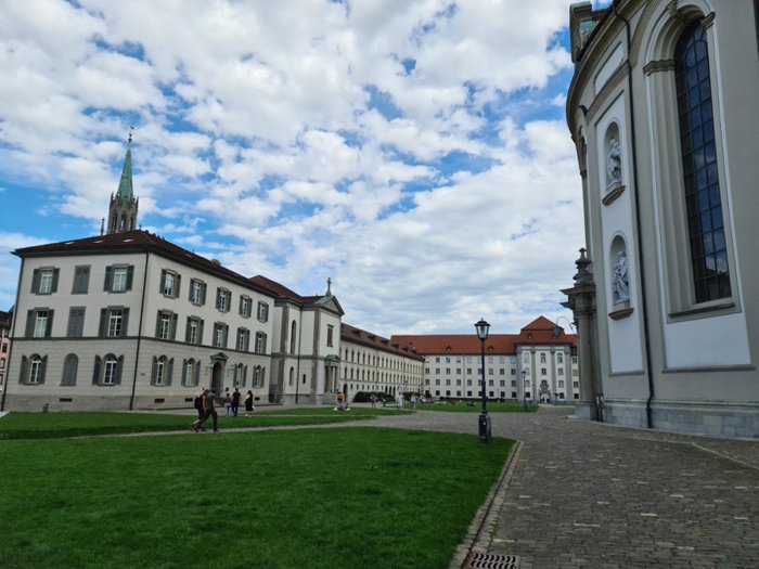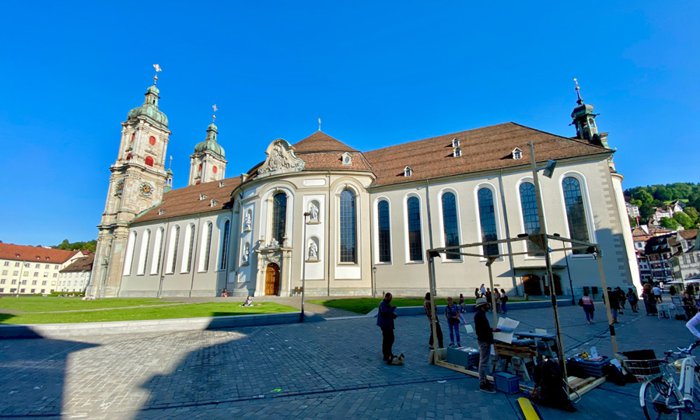 The library of the Abbey of St. Gall is a monastic library from the Middle Ages. It is an ancient library with a long history. It was founded in the year 930 and remained one of the most important cultural centers in Europe until 1805. The library is distinguished by its majestic hall, which was designed in the Rococo style by the architect Peter Thumb (Peter Thumb) in the year 1758, and visitors will find a Latin inscription on the door of the hall, which translates in Arabic to "spirit pharmacy", meaning that the books in the place will revive the spirit of the visitors. There are currently approximately 160,000 volumes in the library, in addition to more than 3,000 historical books from the Middle Ages.