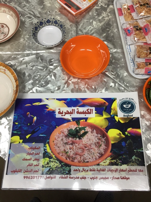 Soup Abu Azan Seafood Restaurant, an excellent little restaurant owned and operated by locals. It is characterized by a wonderful location on the coast in the city of Sohar, here you can try the best seafood soup, as it offers a wide range of options available, the most distinctive of which is seafood soup, shrimp and fish of all kinds, shrimp, and many other seafood, in addition to various grills, and meat Grilled or roasted cows presented in a delicious way, along with various types of appetizers and salads that complement the meals. It is a wonderful place and deserves appreciation. We advise you to visit it.