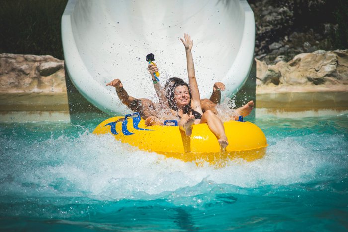 The Aquapark amusement park opens its doors to its visitors, both tourists and locals, from early morning hours until late at night, so that they can enjoy the times they spend with family, friends or other members of the tour group. The colorful lights spread throughout the amusement park increase its beauty at night, as they are reflected in the water pools and provide a beautiful atmosphere in the gardens.