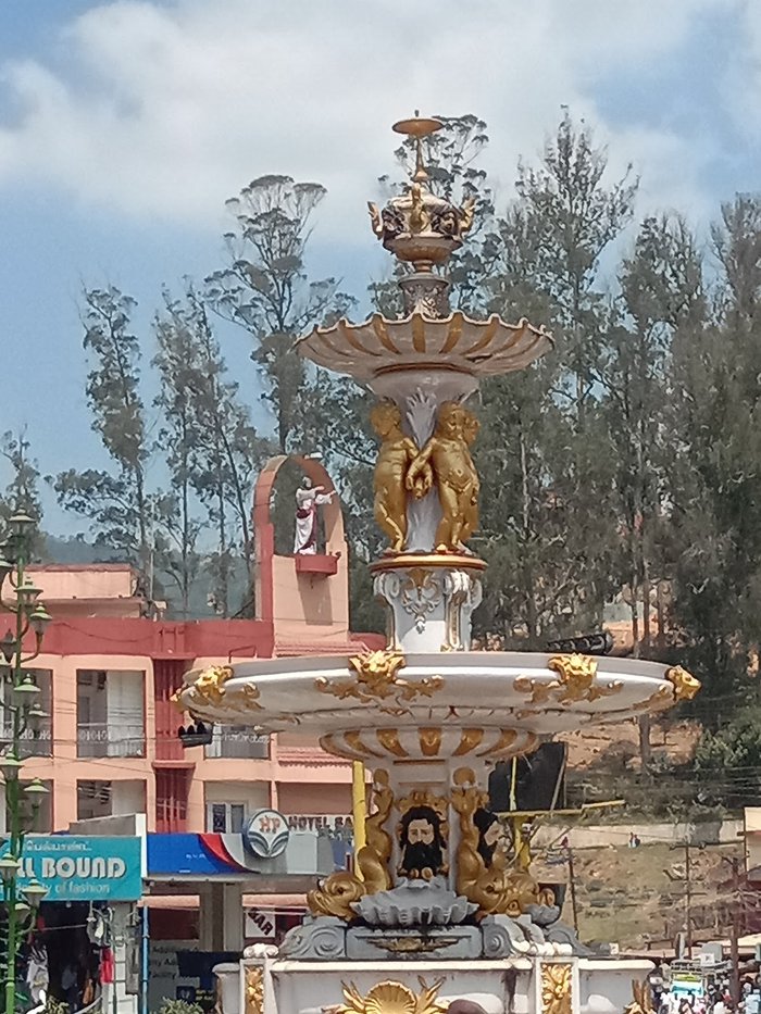 The Adam's Fountain was built in the year 1886 AD as a memorial to the ruler of Ooty at that time, as he was loved by the residents and they wanted to honor him, so the fountain was built from tax money. The fountain has moved three times throughout its history, and was moved to its current location in the year 1898 AD. The fountain is distinguished by its unique design in the Renaissance style, as it combines white and gold colors, and there are many beautiful statues in it.
