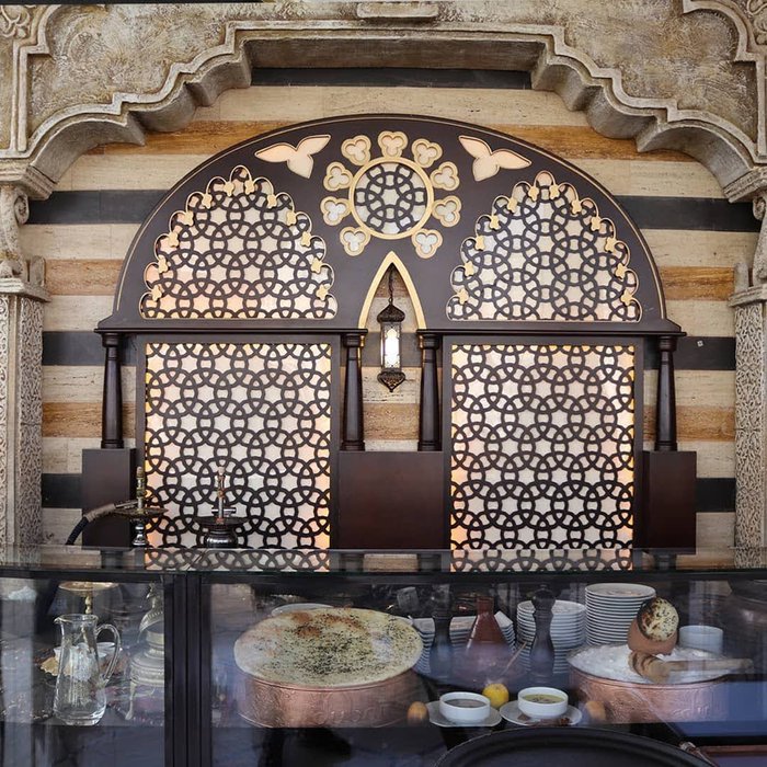 Address Dubai Restaurant is one of the finest Arabic restaurants in Istanbul, as it came with a unique and distinctive two-storey architectural design with Arabic interiors such as those inspired by the Levant, where the decorations and wood carvings fill the walls. The menu here includes a large assortment of main dishes, such as kibbeh and grills, and some dishes inspired by Yemeni, Syrian, Egyptian and Moroccan cuisine, in addition to a large selection of eastern and western sweets.