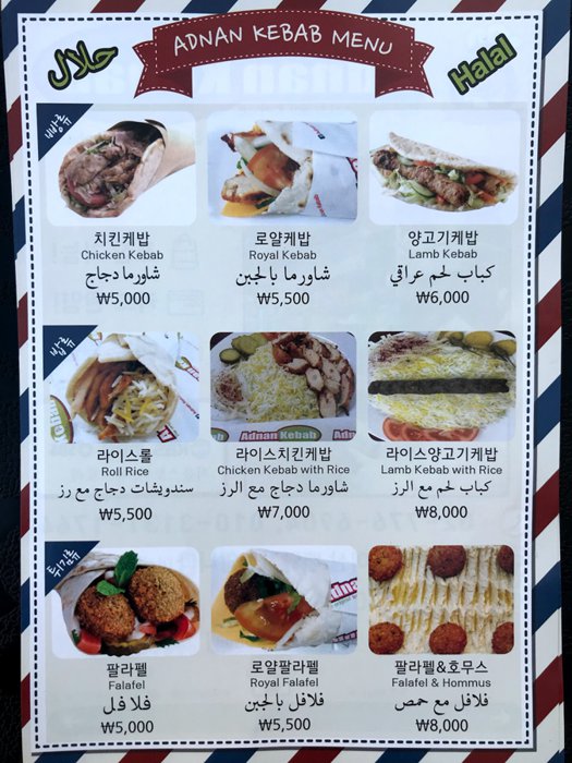 Adnan Al-Halal Kebab Restaurant is located in the city of Incheon, and it is a restaurant that serves many oriental and Arabic foods, including delicious grills, shawarma, falafel, Arabic bread, and other Arabic foods. If you are a fan of Arabic food and grills, you should visit this restaurant and enjoy an Arabic meal, as when you taste the unique flavors, you will feel as if you are in an Arab city and not in South Korea.