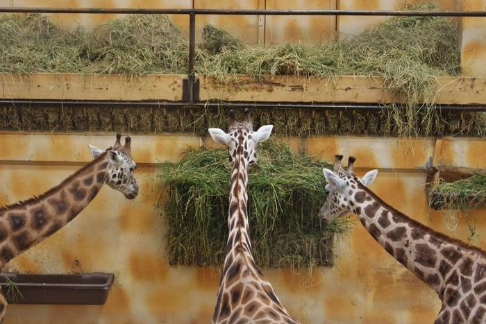 African wintering birds and pavilion of giraffes and terrariums