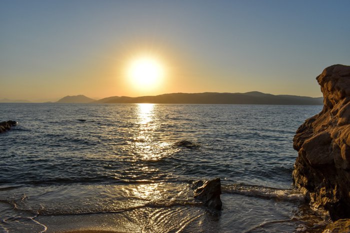 The distinctive atmosphere offered by Agia Eleni Beach attracts tourists and locals to spend a beautiful day full of fun activities and beach games, as the large beach area allows for the provision of a large number of beach chairs and umbrellas with different designs, which tourists prefer to sit there and enjoy cold drinks and contemplate the charming sea view, especially at sunset.