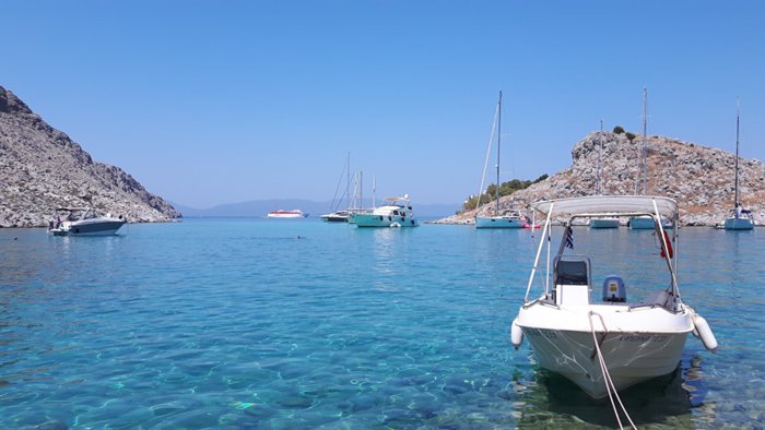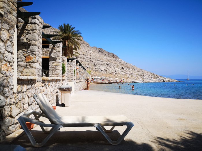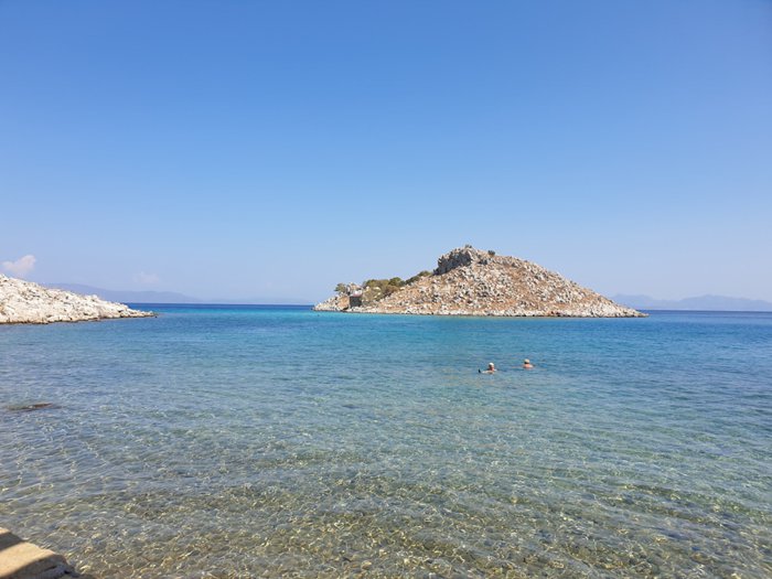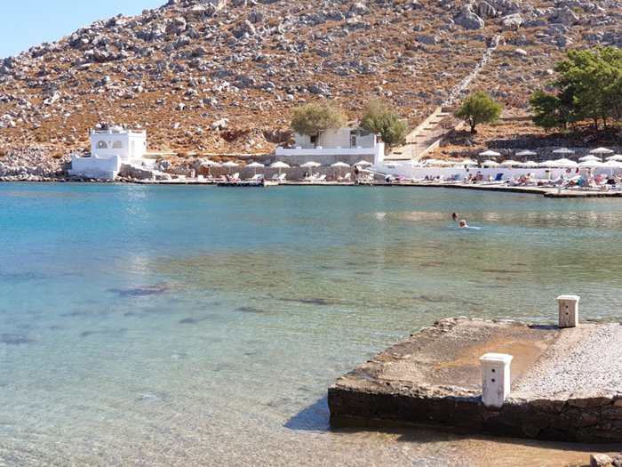 Agia Marina Beach is one of the most beautiful beaches on Symi Island, with its clear, light blue waters and golden sands, which tourists and locals enjoy strolling along with their families and friends. The beach is suitable for a number of water sports and beach activities such as volleyball, swimming, surfing, and participating in cruises.