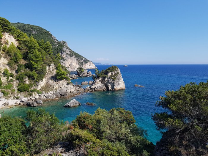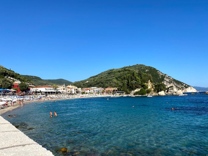 Agios Giannakis Beach, also known as Agios Ioannis Beach, is a small beach located 6 km from Parga, and is characterized by its white sand and clean blue waters. The beach itself consists of a piece of land surrounded by rocky mountains and low cliffs, and these mountains protect the beach from strong winds and weather Bad weather, and visitors to this beach are advised to wear shoes when swimming because the sea bottom is very rocky and walking on it with bare feet may be uncomfortable.