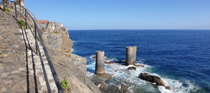Davit Agulu was built in 1908 and is a remarkable work of industrial engineering built to transport fruits and people to the boats, it is erected on two concrete pillars and a wooden and metal arm where the boats are moored outside Agulu, its structure disappeared in the fifties of the last century due to the density of the sea water, the only thing we can His vision today is the two concrete publications.