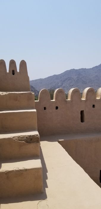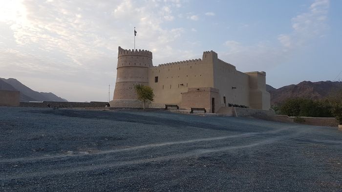 Outside Fujairah City and 13 km along the main highway, Bithnah Fort lies on the strategic roads that cross the Hajar Mountains through Wadi Ham. Built in 1735, the fort was of vital importance to the defense of the eastern region of the United Arab Emirates. The fort's massive frame of thick golden stone walls, flanked by a circular watchtower, makes for photo ops, while the views from the ramparts over the nearby palm groves and mountains are stunning.