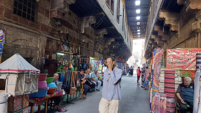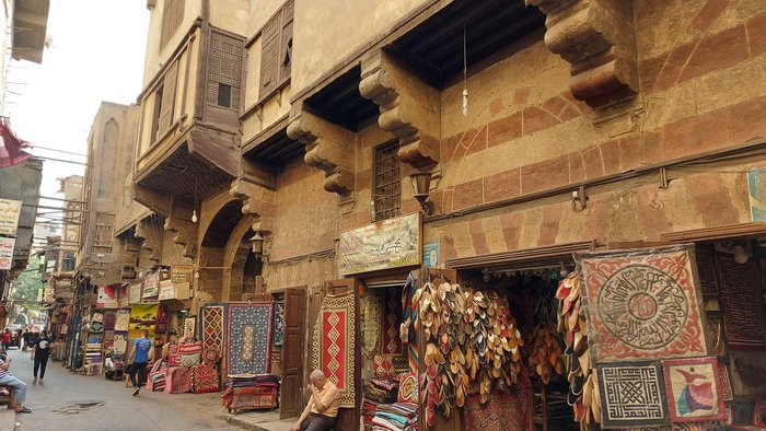 Behind the southern walls of Fatimid Cairo and directly across the street from Bab Zuweila stands a unique place in modern Cairo, the Khayameya Market, an alley covered with a high ceiling and lined with stalls where merchants in Cairo have been selling their wares for centuries, and here you can Carpets, colorful tapestries, quilted cushion covers and wall hangings can be found, but the souk takes its name from the tent makers who offer tapestries made of colorful cloth decorated with traditional Islamic designs reminiscent of the inlaid marble that adorns mosques.