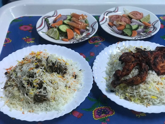 Al Shariq Restaurant and Café is an upscale Yemeni restaurant suitable for families and groups of friends. It welcomes its customers in a wonderful and comfortable atmosphere. It enjoys beautiful and elegant decorations. Its outdoor terrace is filled with plants, flowers and colorful lights. It is also characterized by relatively fast service. Its menu includes many delicious Yemeni dishes. And some Omani specialties, and one of the best things to try is grilled chicken on charcoal, Omani kabouli, makbous, mutabal, and hummus with shawarma.