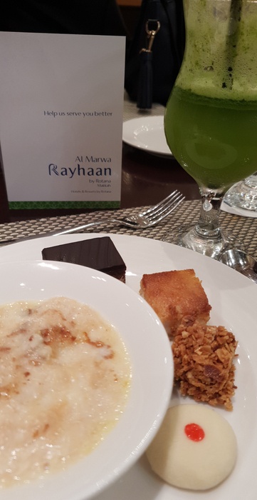 The restaurant overlooks the sanctuary from the side of King Abdul Aziz Gate, which is a wonderful, unparalleled view of the sanctuary and the honorable Kaaba. This restaurant is located in Al Marwa Rihana Rotana Hotel in Abraj Al Bait. The menu is full of various items and dishes from all over the world, including local ones such as Kabsa and Mansaf, Italian ones such as lasagna, and Western ones such as calamari, steak, shrimp, grills and many others. The service is very good and the taste is great.