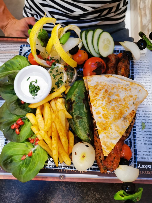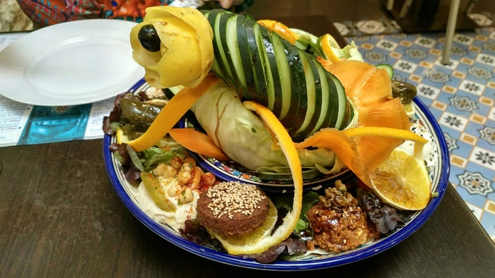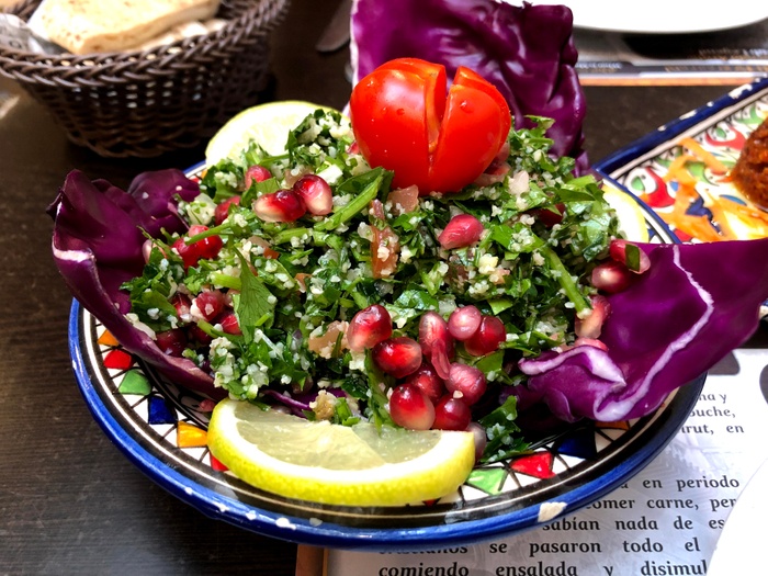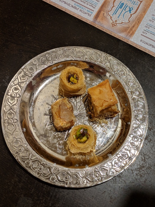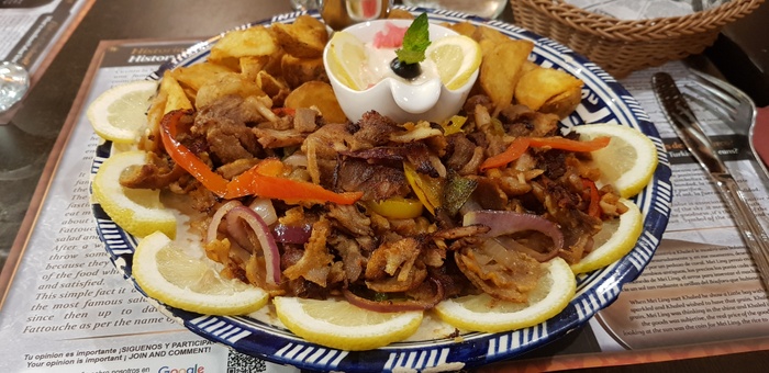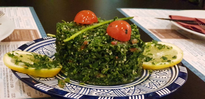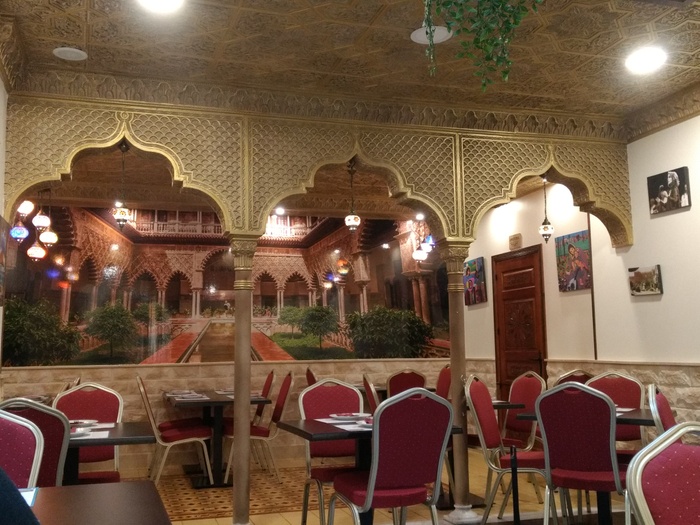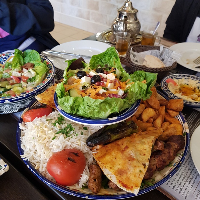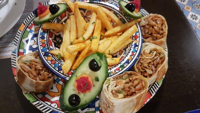 An Arab-Moroccan restaurant, distinguished by its decor inspired by the traditional Moroccan heritage, and its comfortable and oriental atmosphere. The list of food includes appetizers, including hummus, labneh, moutabel, baba ghanoush, muhammara, and some salads, including tabbouleh, fattoush, and oriental salad. As for the main dishes, there are shawarma dishes, Ouzi, Mansaf, Kabsa, Kibbeh with milk, Mujadara, Tajine, couscous, various grills, and many other delicious dishes. In addition to side dishes, including grape leaves, falafel, kibbeh, samosas, and others. Delicious Arabic and Middle Eastern sweets are also available, including baklava, kunafa, pudding, and rice pudding.