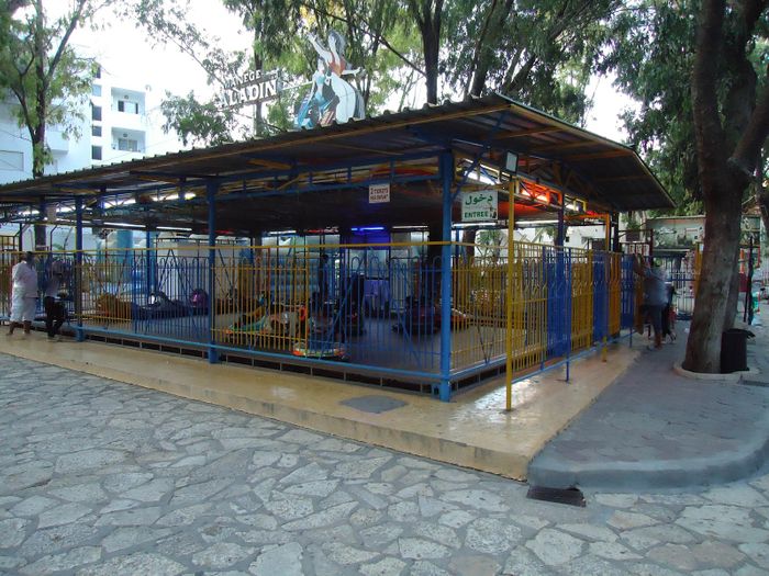 Aladdin Park is located in the city center of Sousse, and it is surrounded by scenic landscapes, and welcomes its visitors in a large entertainment space that includes dozens of games that have been developed to suit all family members, such as inflatable games, collision cars, racing cars, express trains, and others. It also provides The park has many walking paths, areas designated for practicing sports activities, a group of seating, and a resting place with a restaurant that serves light and fast snacks and refreshing drinks.