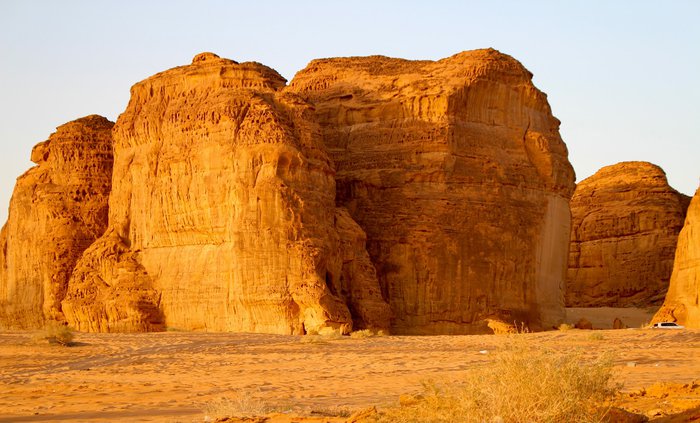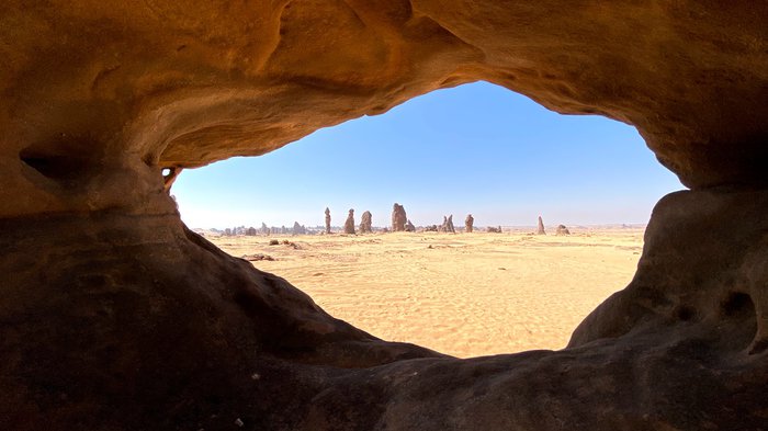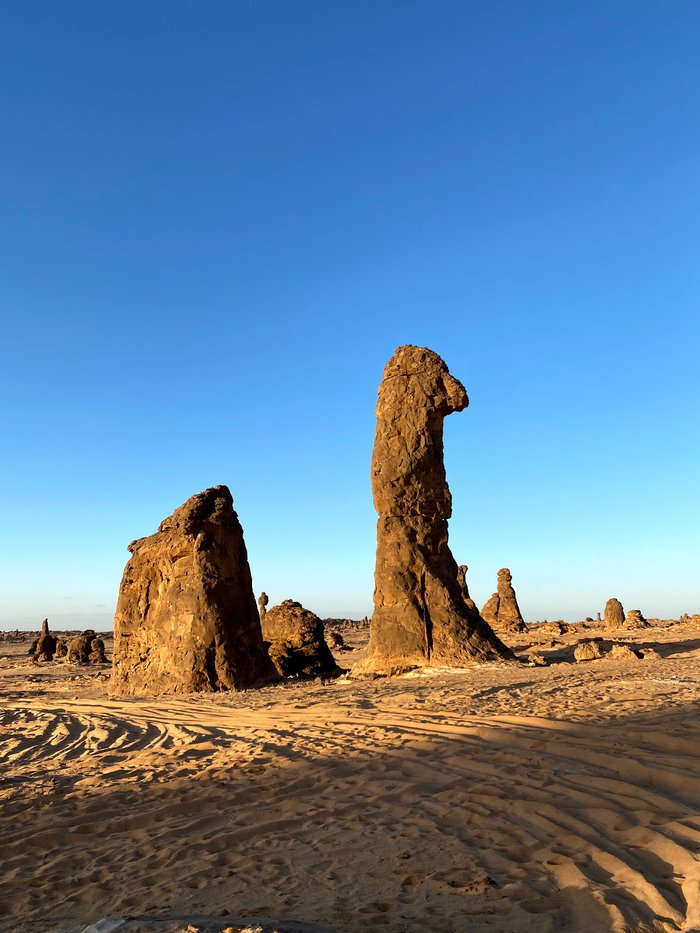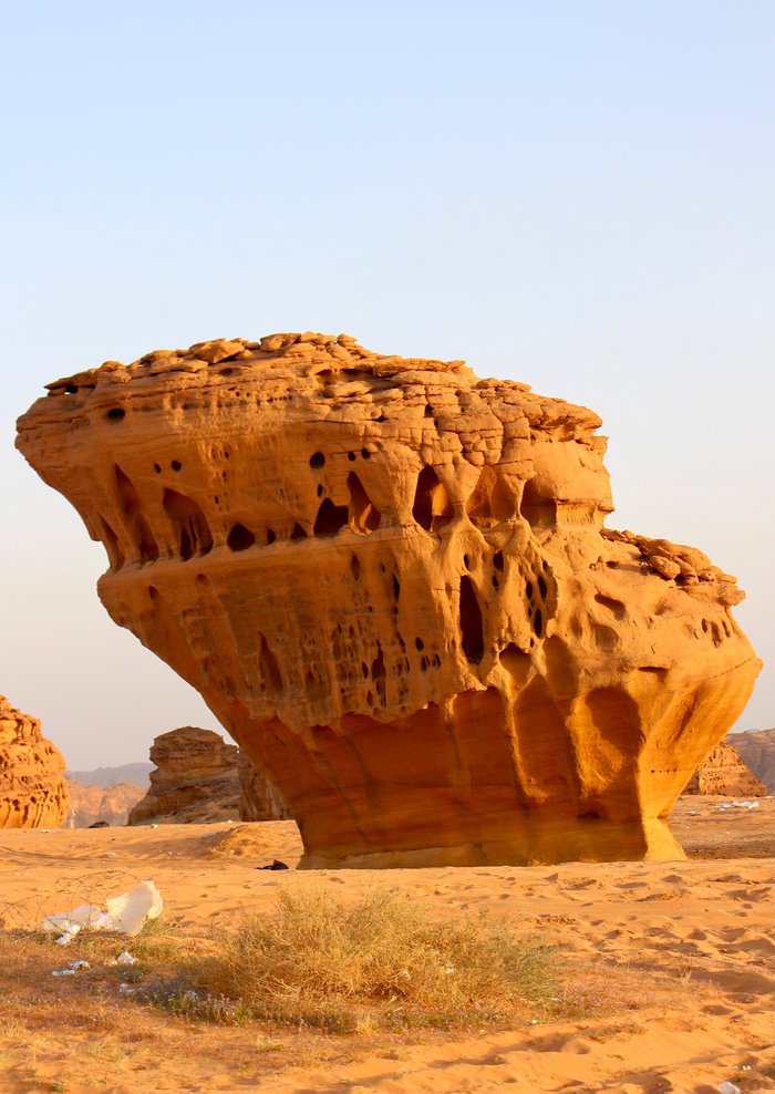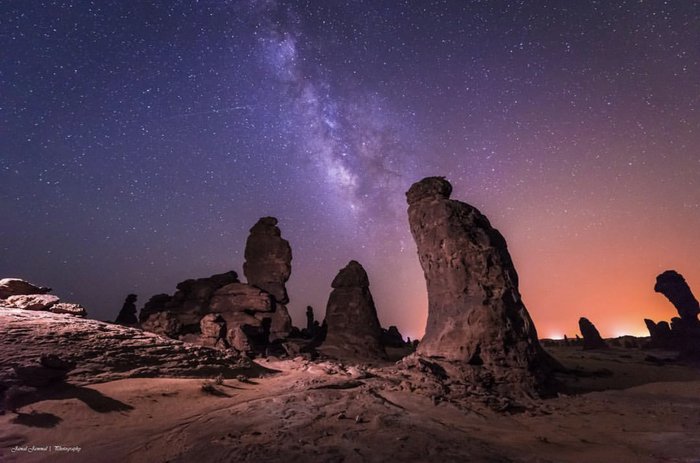 The land of Al-Gharamel is located about an hour away from the center of Al-Ula, where you can discover a group of thin and dark stone columns known as “Al-Gharamel”, and you will need to walk in rugged roads to reach the site, so it is recommended to use an experienced driver in four-wheel drive cars, and upon arrival you will be rewarded with a charming view It is unparalleled, especially in the night hours, when the dark skies of AlUla put on a dazzling display of stars twinkling above the rocks.