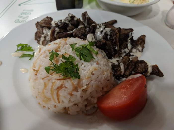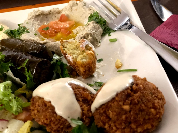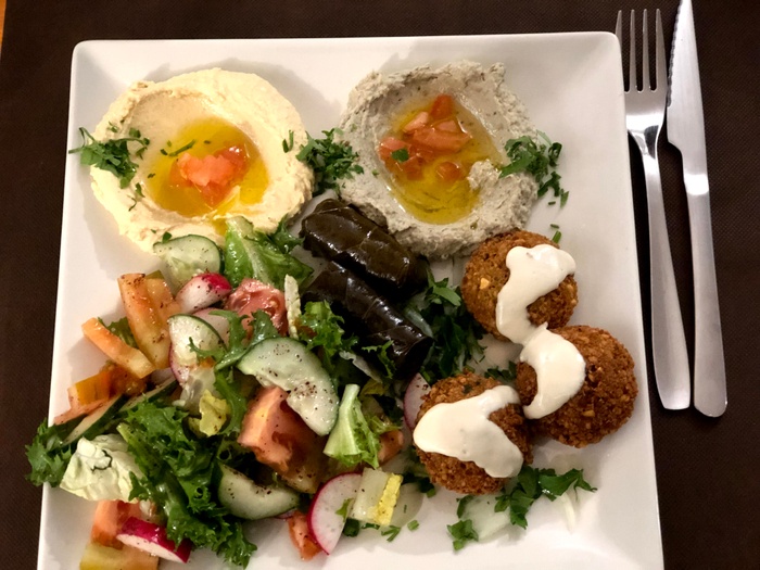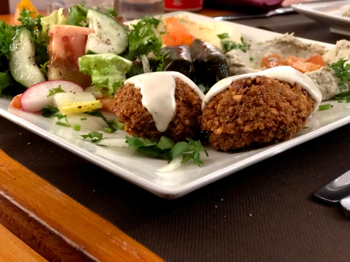 Lebanese restaurant with a calm atmosphere and simple traditional décor. It serves many delicious Arabic and Middle Eastern foods such as falafel, kibbeh, arayes, pastries and grape leaves, in addition to a range of appetizers such as hummus, moutabal, foul and labneh. The restaurant also offers different types of salads, the most delicious of which are tabbouleh, fattoush and Greek salad. As for the main dishes, there are kofta dishes, kofta with tahini, shawarma, shish tawook, kebabs and Moroccan couscous, in addition to pita bread rolls and other delicious foods.