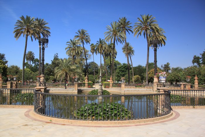 The Plaza de America, which was built for the Ibero-American Exhibition of 1929, is located in the beautiful Maria Luisa Park in Seville, and it includes ornate suites and a beautiful pond surrounded by columns and wonderful gardens. Don't forget to take the most beautiful memorial photos with family or friends.