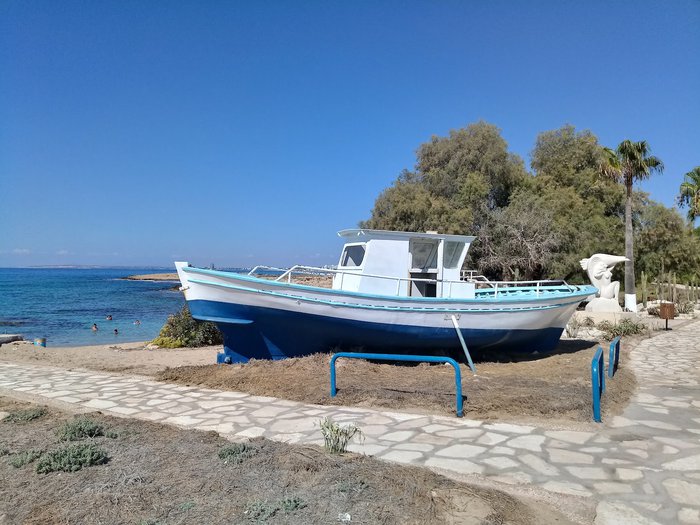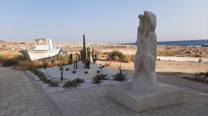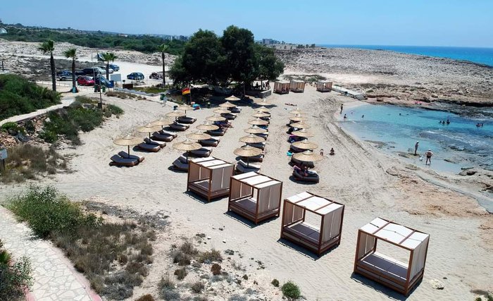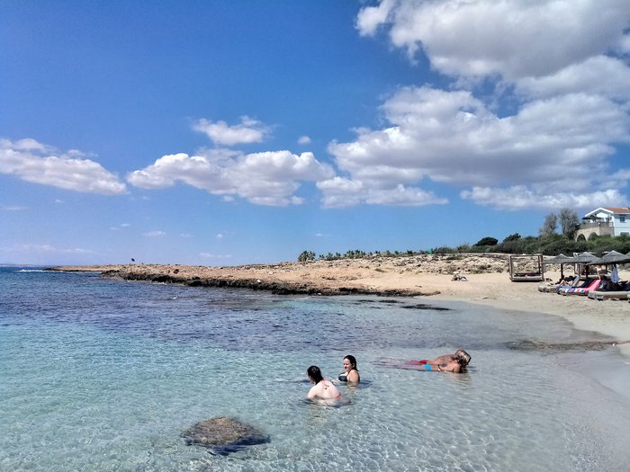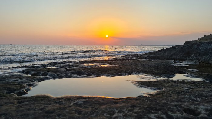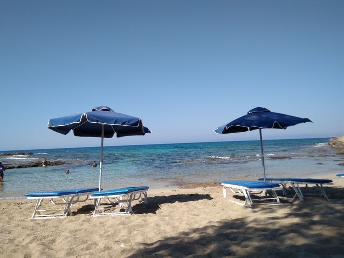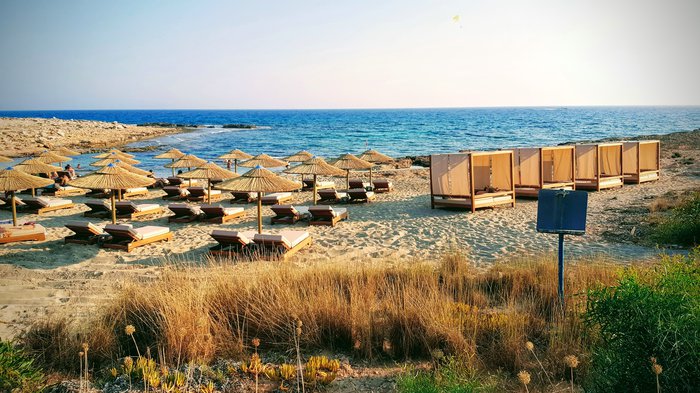 Amos Kampori Beach is a small natural cove located between sea caves, until a few years ago, the beach was a well-hidden secret in the city, not many people were aware of such a beautiful beach. The beach is located 2 km east of the city center and is 100 meters long. It is a small, quiet, mostly rocky beach with a sandy center covered with fine golden sand.