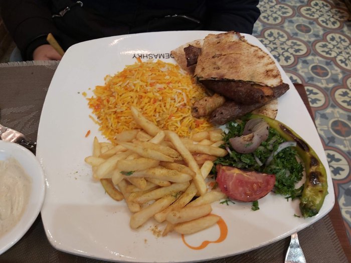 Anas Al-Dimashqi Restaurant attracts large numbers of tourists and locals, as it specializes in preparing the most delicious recipes of Levantine cuisine mainly, such as Arabic shawarma meals, meat and chicken meals cooked with vegetables and served with rice, in addition to a group of fast food options such as fried chicken served with French fries and different types of Sauces, and pizza with different ingredients and methods of preparation.