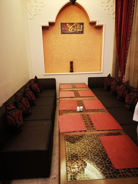 In Annabi Restaurant, you can sit in private rooms in traditional oriental style separated from each other by ornate wooden partitions or sit outside on the terrace that offers a wonderful view of the palm trees, and you do not have to be a smoker to enjoy a whiff of peach shisha from the adjacent tables in this restaurant While savoring the most delicious Lebanese, oriental and Mediterranean cuisine, which includes hot appetizers, mixed grills and delicious natural cocktails.