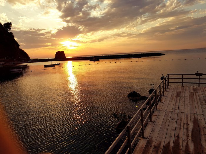Antica Bath Konca deli Sirene is a picturesque beach equipped with amenities and entertainment that guarantee visitors an unforgettable time, as it is characterized by its pebbly extension and turquoise waters that reflect the mesmerizing color of the sky, and it has platforms that include sun loungers and umbrellas, which makes it ideal for swimming, lying down, relaxing and contemplating Sunset and even eat delicious food.