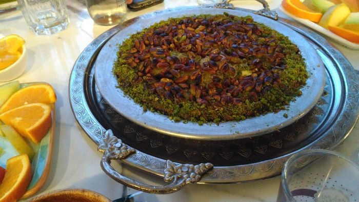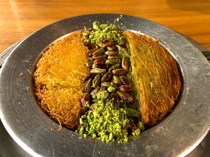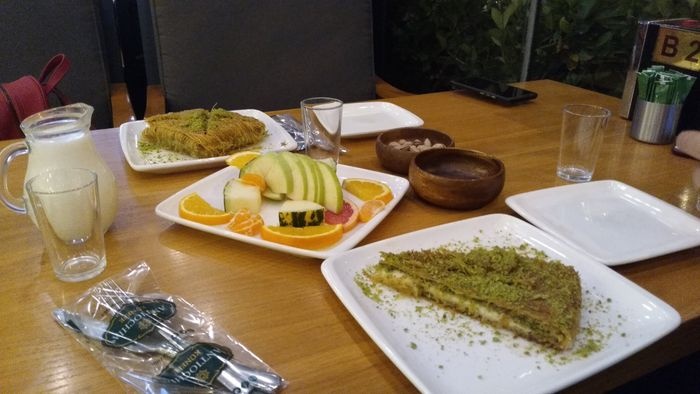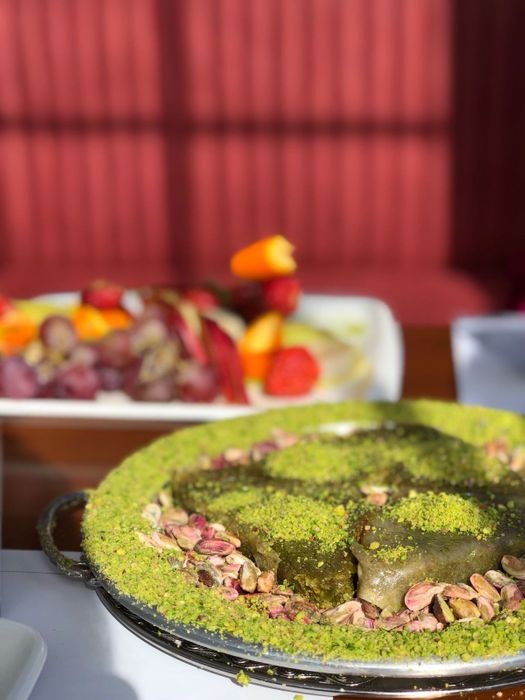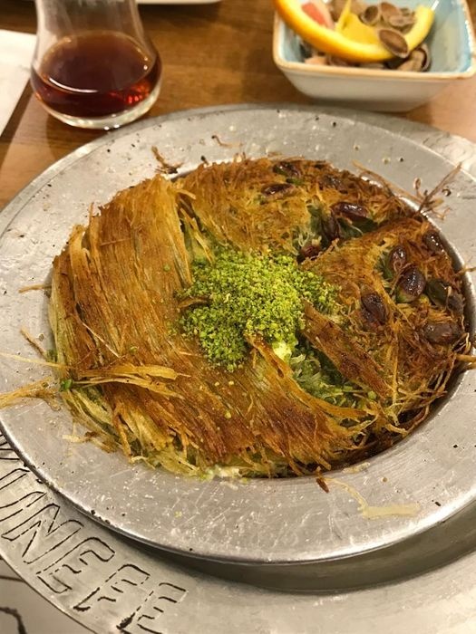 An Arab restaurant in Izmir that specializes in Arabic sweet dishes, such as the delicious Nabulsi Kunafa, and many other sweet dishes such as Al-Matiq with cheese or cream, the delicious two-layer Turkish Kunafa covered with pistachios, and the delicious baklava in its various forms. The restaurant also offers delicious Arabic mezze dishes such as pickled olives, Labneh with garlic, labneh with chili, oil and thyme, and many drinks such as delicious Arabic tea with mint. The restaurant environment is comfortable and suitable for family and friends meetings.