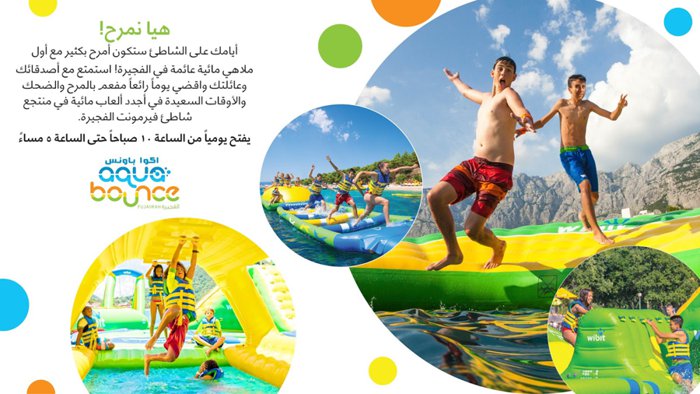 Get ready to spend the most enjoyable time with family and friends at Aqua Bounce Water Park, it is the first floating water park in Fujairah City, located in the Dibba Al Fujairah region, and provides endless jumping, refreshing spray, fun and fun for everyone, and features slides, towers, bridges, ramps, suspension bars and even floating trampolines.