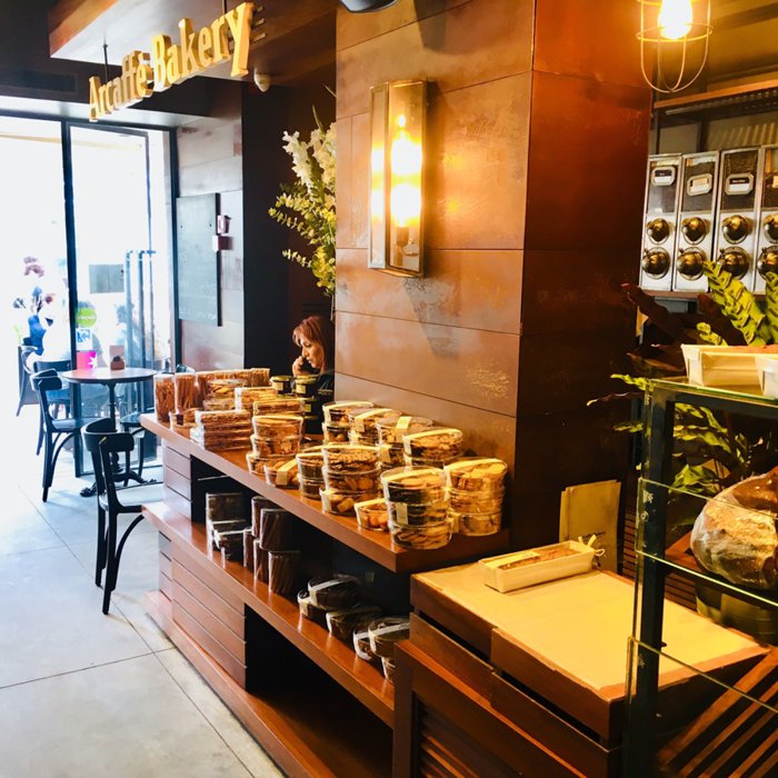 Arcafe is a chain of coffee shops that was initially established in Italy in the year 1895 to serve fine Tuscan coffee, and over the decades it has become one of the most prestigious roasting houses in the world. The first branch of these coffee shops was opened in the occupied Palestinian territories in the year 1995, and since then it has expanded throughout the country and has Dozens of branches, and this branch on Rothschild Avenue offers luxurious Italian coffee with many types, as well as many types of French baked goods that are prepared according to the method of international chef Eric Kaiser, and visitors will also be allowed to eat many vegetarian dishes, including European and Eastern salads characteristic. Visitors can eat their dishes in the courtyards of the elegant café, or take them to eat outside (takeaway).