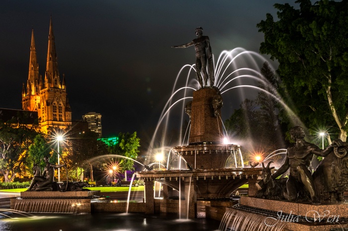 The Archibald Fountain, properly called the Archibald Memorial Fountain, is located in Hyde Park, in the center of Sydney, which was sculpted by François-Léon Sicard, who was one of the most prominent sculptors of his time, a French artist, educated in classical art, and has His inspiration was derived, at least in part, from his study of classical Greek and Roman art and literature, and his choice of classical figures in this fountain was in line with the European traditions of sculpture and architecture of the Hyde Park area, and for this reason the Archibald Fountain is one of the oldest and most famous public fountains in Australia, as it is a place for tourist photos, And political gatherings, as they are distinguished by their distinctive location amid the beautiful and picturesque landscapes, surrounded by trees and flowers, as they are a distinctive and exceptional landmark, visited by everyone from all over.
