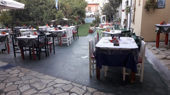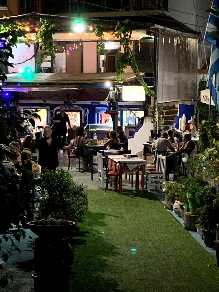 Evening can be the best time to have a delicious meal of local Greek cuisine at Iris Restaurant, and then enjoy refreshing summer fruits or a piece of dessert to the tune of dancing music on the restaurant's outdoor patios. Grilled meat and poultry, as well as fresh fish brought by fishermen specially from the Mediterranean, top the menu here and are served with fried potatoes and the famous Greek salad.