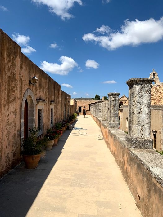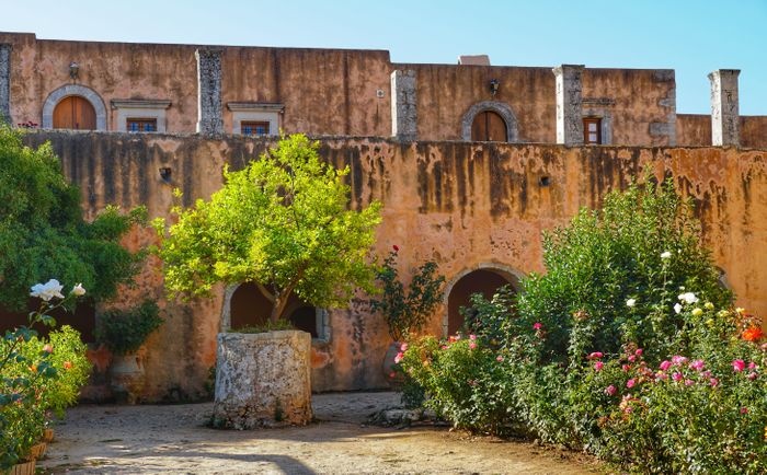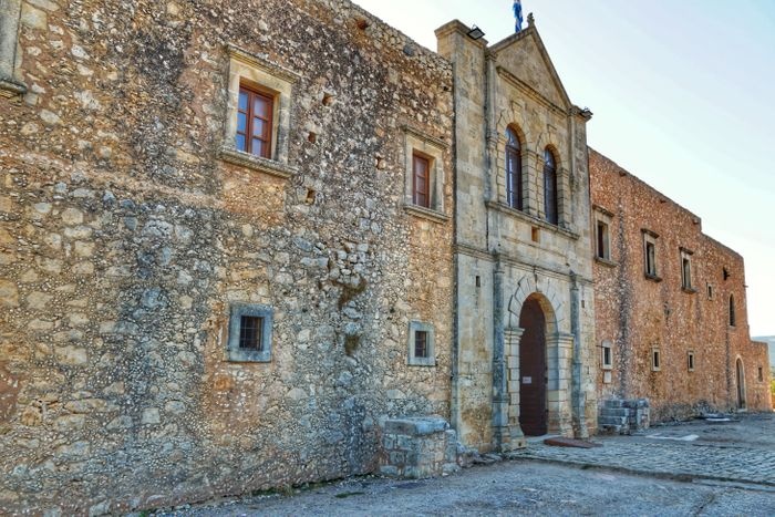 Arkadi Monastery is an Eastern Orthodox monastery, located on a fertile plateau 23 km southeast of Rethymnon in the Greek island of Crete, dating back to the 16th century, with Renaissance influence and Baroque architecture. This amazing monastery holds a large part of Cretan history, as it witnessed the Cretan revolution against the Ottoman Empire, and the building includes a museum, a church, and some storage areas.