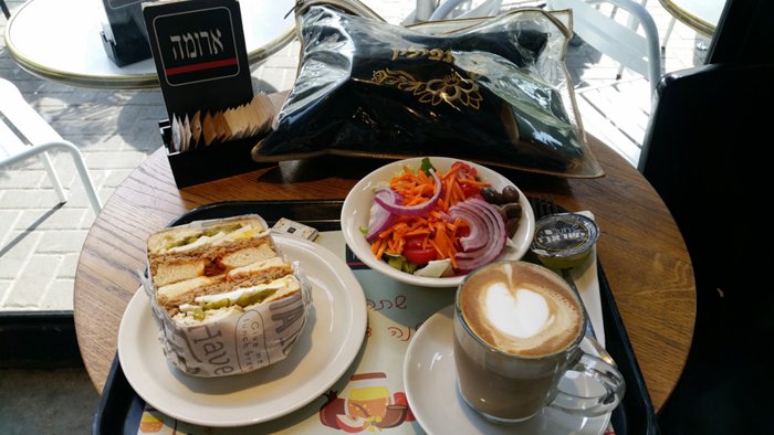 This coffee shop in the Ben Yehuda 21 neighborhood is one of the branches of the famous Aroma coffee shop chain, which are luxurious coffee shops that provide customers with all kinds of cold and hot drinks such as iced coffee, cappuccino, iced lemonade, many European pastry options, and delicious fresh salads such as tuna pasta salad, tofu salad, quinoa salad, and dishes Delicious and filling breakfast like shakshuka and smoked salmon. This cafe is characterized by the fact that it provides its customers with many vegetarian options and many gluten-free options, and it is characterized by the fact that its prices are moderate and suitable for everyone. In this cafe, you can take your orders to eat outside the place (take away), or you can eat them in the modern interior courtyards.