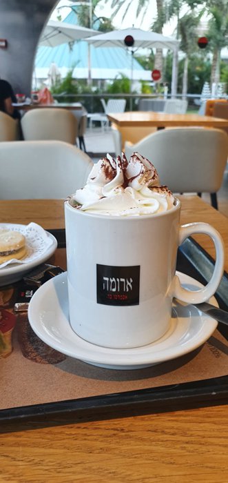 This coffee shop in the Yaloum neighborhood is one of the branches of the famous Aroma coffee shop chain, which are luxurious coffee shops that provide customers with all kinds of cold and hot drinks such as iced coffee, cappuccino, iced lemonade, many European pastry options, and delicious fresh salads such as tuna pasta salad, tofu salad, quinoa salad, and delicious breakfast dishes And saturated like shakshuka and smoked salmon. This cafe is characterized by the fact that it provides its customers with many vegetarian options and many gluten-free options, and it is characterized by the fact that its prices are moderate and suitable for everyone. In this cafe, you can take your orders to eat outside the place (take away), or you can eat them in the modern interior courtyards.