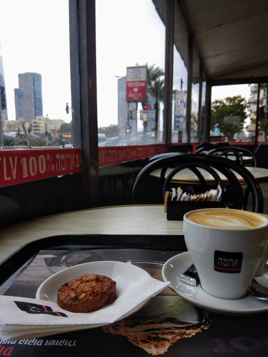 This coffee shop in the Yigal Alon 88 neighborhood is one of the branches of the famous Aroma coffee shop chain, which are luxurious coffee shops that provide customers with all kinds of cold and hot drinks such as iced coffee, cappuccino, iced lemonade, many European pastry options, and delicious fresh salads such as tuna pasta salad, tofu salad, quinoa salad, and dishes Delicious and filling breakfast like shakshuka and smoked salmon. This cafe is characterized by the fact that it provides its customers with many vegetarian options and many gluten-free options, and it is characterized by the fact that its prices are moderate and suitable for everyone. In this cafe, you can take your orders to eat outside the place (take away), or you can eat them in the modern interior courtyards.