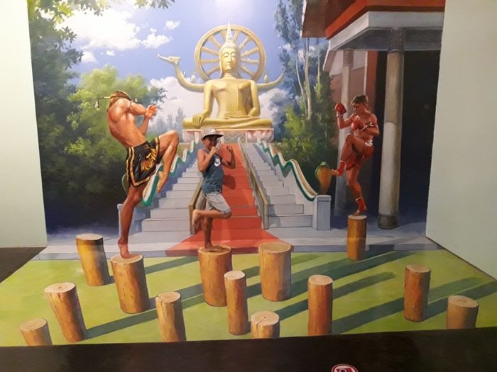 The 3D Art Museum of Samui invites you to become a part of 65 optical illusions, created by professional Korean artists. Visitors are encouraged to interact and have fun with the art pieces, and to take as many photos as possible. The museum is filled with one-of-a-kind paintings that, when photographed from a vantage point, create optical illusions that make it look like you're ejected from, or attacked by, the painting. A wonderful museum available to visit and enjoy for all children, adults, families, couples, friends and travelers. You will find it attractive and you will have fun by taking photos with different backgrounds and positions.