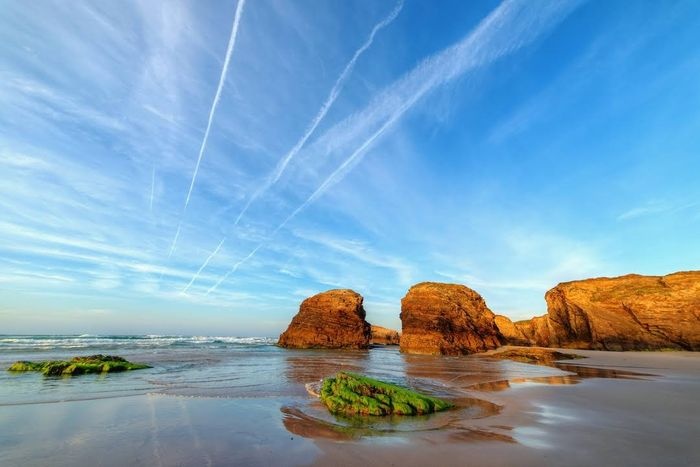 stunning beach in the Spanish region of Galicia, as it includes a group of arches and rocky caves that were formed from natural erosion processes over millions of years, and these amazing natural formations appear to beach visitors only when the tide recedes. It must be taken into account that reservations must be made online to visit this beach in the months between June and September, and in other months it is possible to visit without reservation and entry is free. This beach also features free parking.