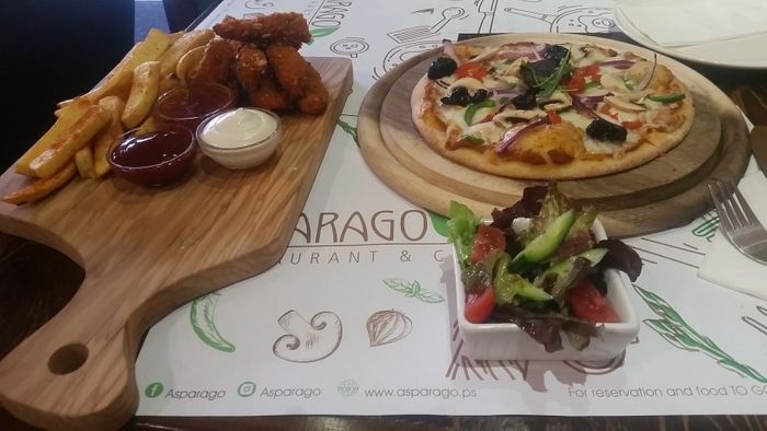 Asparago Restaurant and Café, located in the heart of Bethlehem, is one of the most famous restaurants in the city. It is visited by locals and tourists who want to try delicious, carefully prepared dishes. The restaurant provides on the menu many delicious options from the Arabic and Italian cuisine, and unique dishes that mix the ingredients of the two kitchens together. Among the dishes it serves there are pizza of all kinds, kibbeh with milk, fried chicken, and various grills such as kebabs, shish tawook and kofta. It also offers a variety of delicious desserts such as qatayef and Italian cannoli stuffed with cream.
