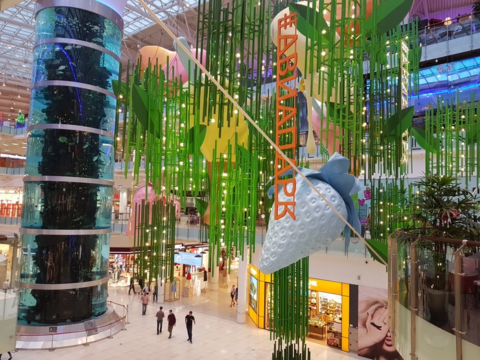 It is a large shopping center that contains 65 restaurants, 345 shops, and 32 entertainment centers. If you love shops, you will love this place. It's amazing how the aquarium runs in the shopping mall as well as an ice rink in the food court that the kids enjoy. It is a wonderful and amazing place and it has almost everything from cloth, shoes, cosmetics all branded goods and many other great shops.