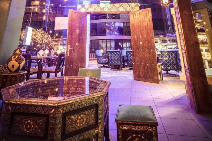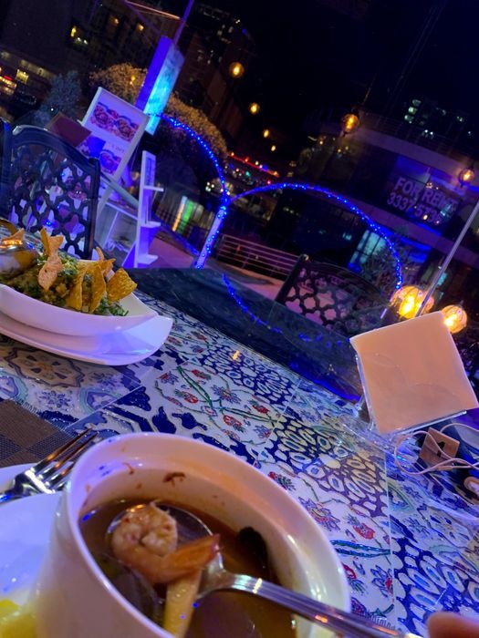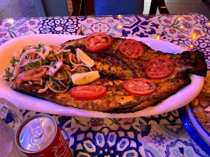 Aisha Bahloul Restaurant is one of the largest restaurants on Amwaj Island overlooking the lake, as it enjoys a large area divided into areas for families and areas for youth, in addition to a section dedicated to VIPs and celebrities. The restaurant is distinguished by its beautiful decor, inspired by Andalusian design methods, in terms of prominent wall patterns, luxurious furniture, wall colors, and bright curtains. It offers its guests a wide selection of various food items such as seafood, grilled meat and rice dishes, in addition to desserts and various drinks.