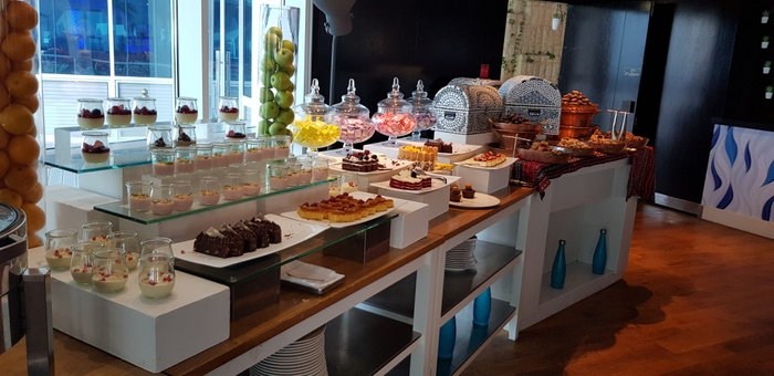 Azraq Restaurant offers exciting international flavours, with its open kitchen, live cooking units and changing thematic buffet food. Dine for breakfast in an open air setting overlooking the bay, treat yourself to a wide a la carte selection for lunch and dinner, or discover the buffet flavors of Middle Eastern, Asian and beyond.