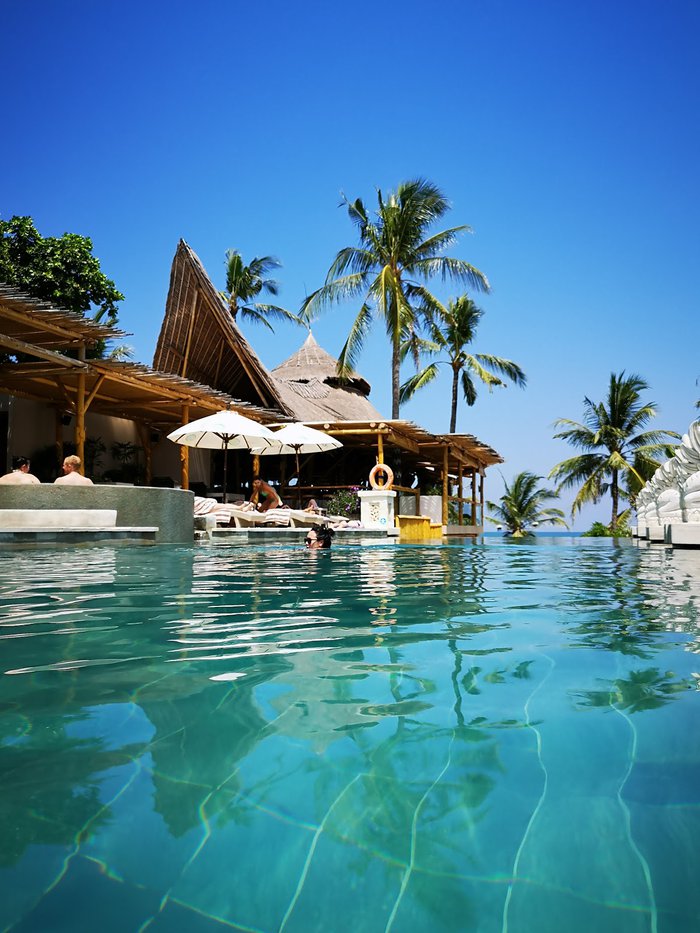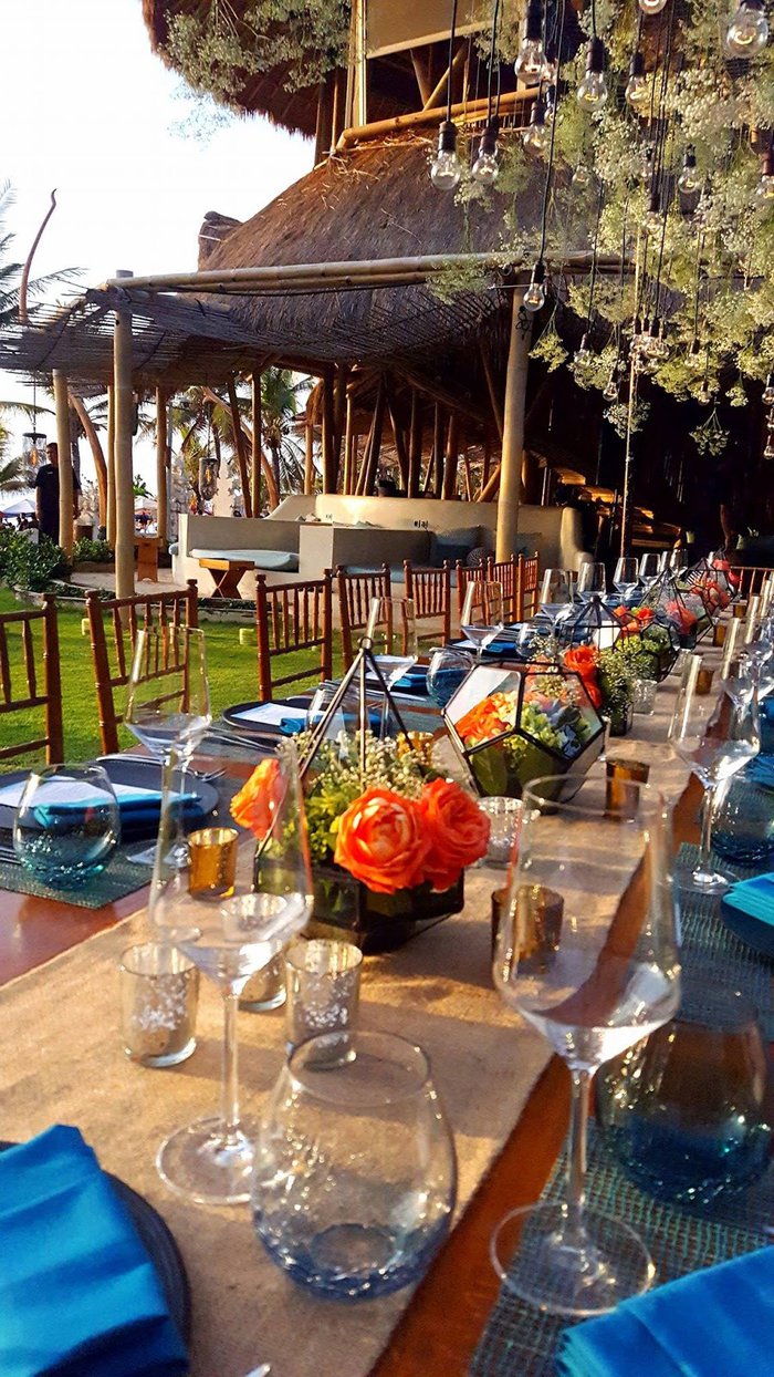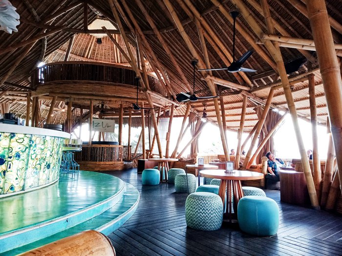Azul Beach Club has a stunning rustic design made of bamboo with beautiful views of the sea. It has a beautiful and spacious swimming pool with sun loungers, and offers a menu that includes many local, international and seafood dishes.