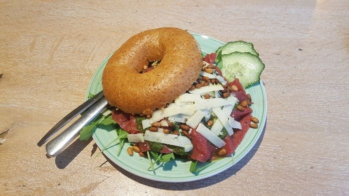 Bagels & Beans is one of a large group of branches distributed throughout the Netherlands, which provides calm and comfort and offers fresh and carefully prepared products in order to satisfy all customers. One of the most important things that is served in this place is the bagel of all kinds, including a bagel with avocado, a bagel with cream cheese, or with oriental hummus, or with slices of turkey. In addition, it serves hot drinks such as espresso, nescafe, cappuccino, and many other items.