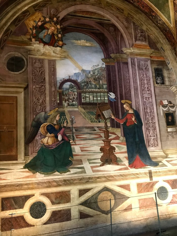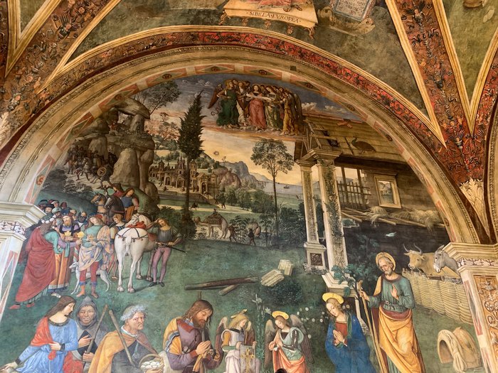The church of St. Maria Maggiore includes a small temple filled with antique paintings belonging to the artist Pinturicchio since 1501 at the request of Troilo Baglioni, and it also contains a self-portrait of the artist, and the murals narrate episodes from the life of Mary and Jesus, and the paintings are accompanied by music Recorded background and story, allowing visitors to take a virtual tour of the mural to learn about its details, minor characters, scenes and small features.