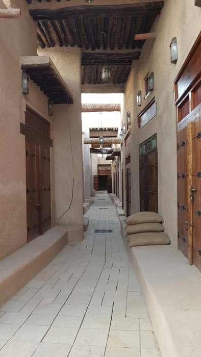 Bahla Market is located directly across the main road leading to Bahla Fort, and it is part of Bahla Oasis. It covers an area of about 4,493 square meters, and includes a group of 142 shops selling various local products, including household items, herbs, spices, pottery goods, silver artifacts, and other items. The market was originally built using mud bricks, but some of its shops have been recently renovated and are now partly made of concrete blocks.