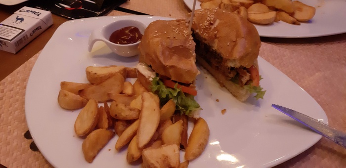 cafe famous in the local and tourist center in the city of Banja Luka, because it provides fast and wonderful service, and because it provides many unique options on the menu, and because it provides all of this at moderate prices that suit everyone. The place is also distinguished by its beautiful modern décor, as beautiful green plants are spread throughout the café, which make the environment of the place warm and comfortable. Among the dishes it serves, there are burgers and steaks with white sauce, grilled potatoes, fried chicken and many others.