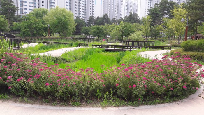 The Pampat Tree Frog Garden is a garden that the city municipality takes great care of, due to the spread of spacious green spaces in it, as well as because it contains rare Korean trees and plants. Throughout the park, visitors will find dozens of statues of Tambat frogs, because the city of Suwon is its original home and gathering place, and it is estimated that there are more than 5,000 of these frogs in this park alone.